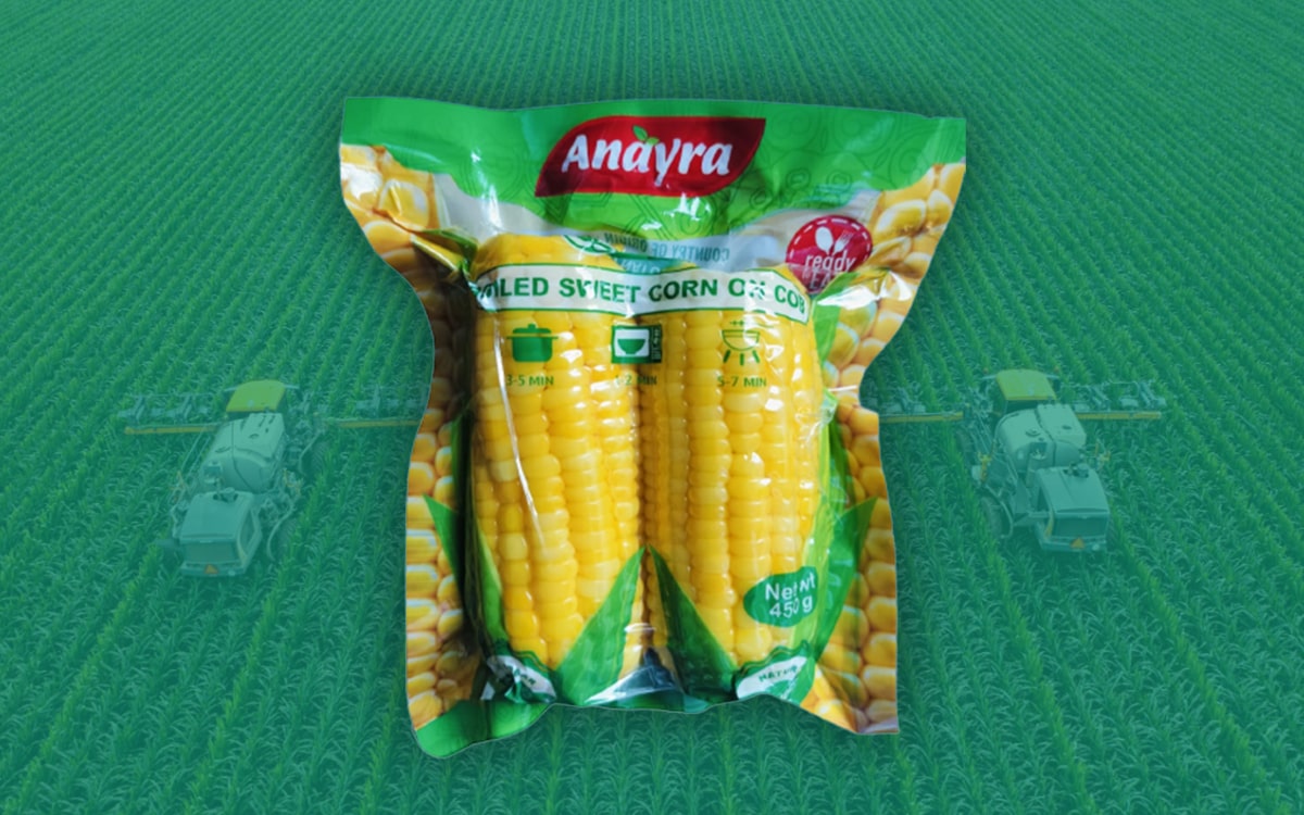 Our product portfolio includes Sweet Corn on Cob using vacuum retort technology, and Sweet Corn Kernels in RO Filtered water. Both Products have a longer shelf life of 18 months. As a team of passionate agriculture entrepreneurs, we collaborate with local farmers to cultivate and utilize post-harvest techniques in processing our produce. Currently we are offering these products with following packing options